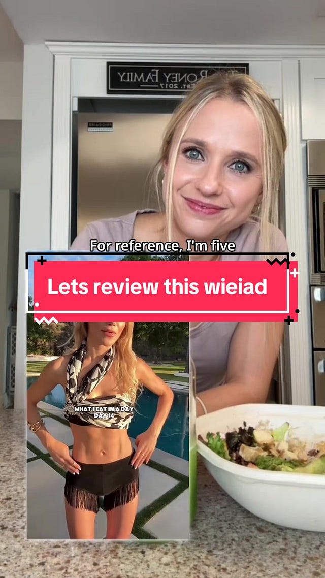 There’s something nostalgic about WIEIAD videos, although it took me a while to identify why. They offer a peculiar kind of intimacy, a simulation of closeness. This connects to a broader cultural longing for the monoculture we’ve supposedly lost. WIEIAD videos function as one of these new monoculture moments. The format is instantly recognisable regardless of the creator. The visual grammar is shared. Even the critique of WIEIAD content has become its own recognisable genre, with registered dietitians and body-positive advocates building entire platforms around calling out problematic videos. Everyone is participating in the same conversation, even if they’re on opposite sides of it.